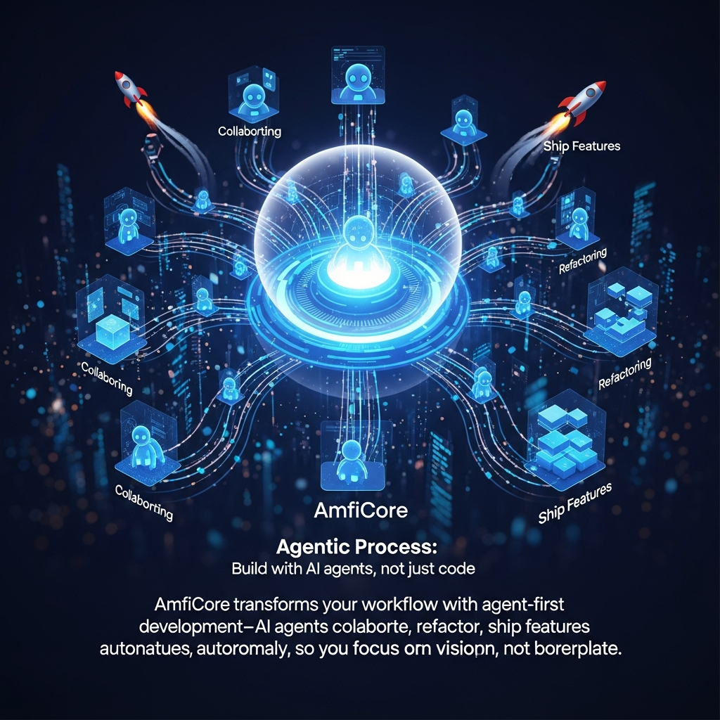 AmfiCore transforms your workflow with agent-first development—AI agents collaborate, refactor, and ship features autonomously, so you focus on vision, not boilerplate.